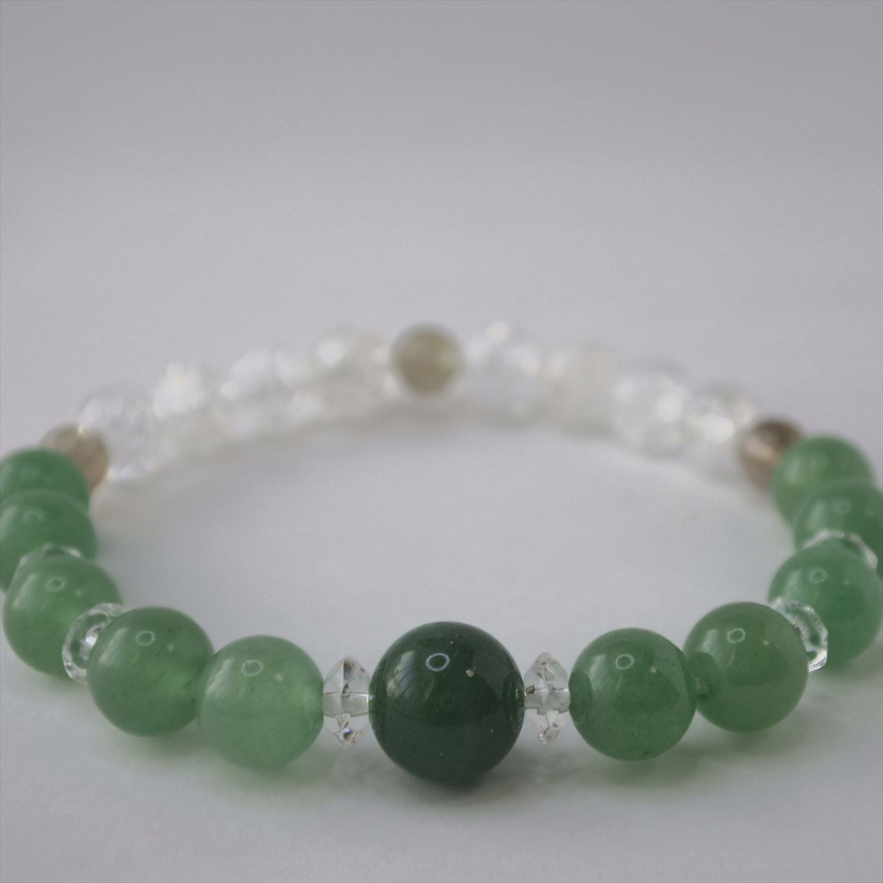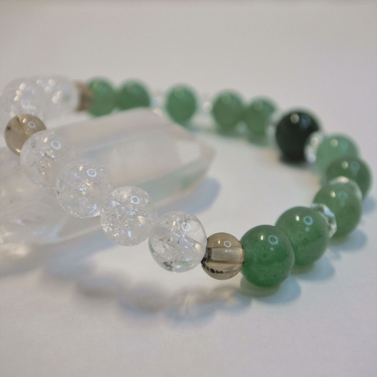 インドアベンチュリン10㎜・グリーンアベンチュリン・クラック水晶ともに8㎜