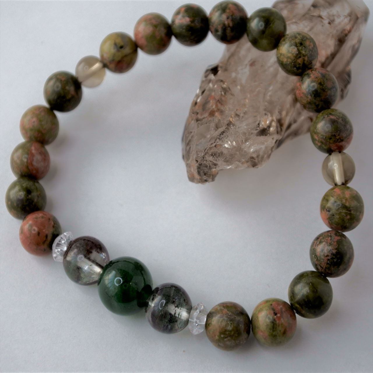 インドアベンチュリン・ガーデンクォーツ・ユナカイト・スモーキーークォーツ・水晶