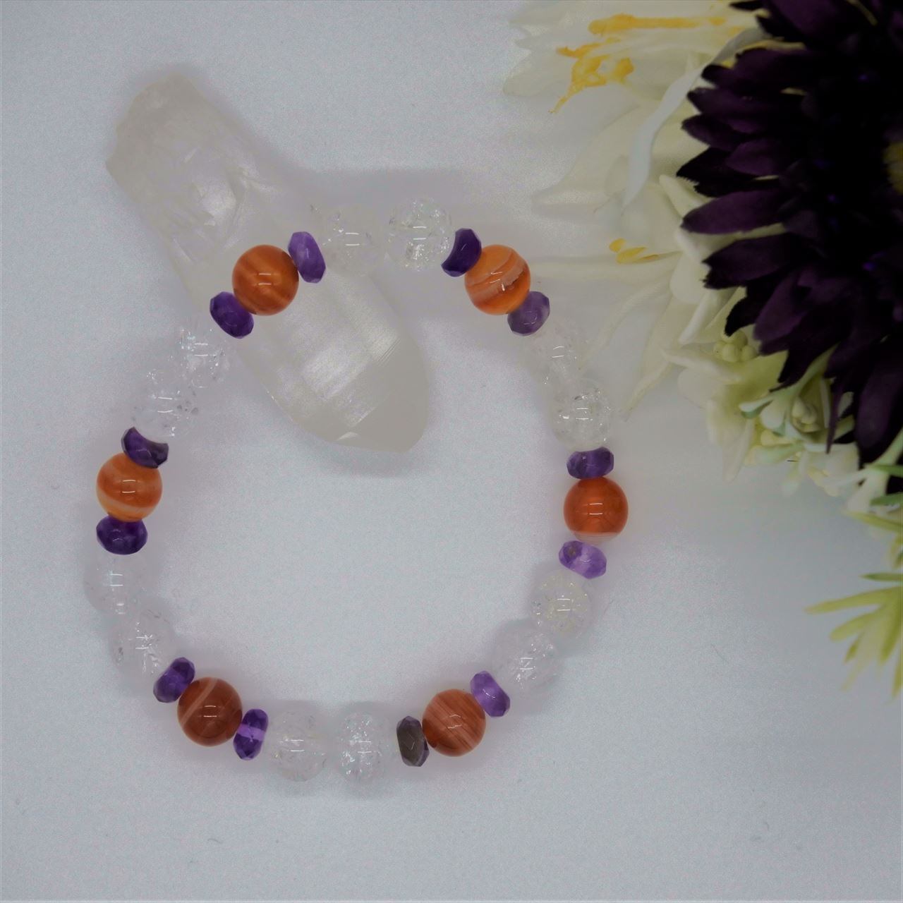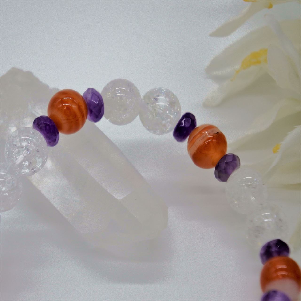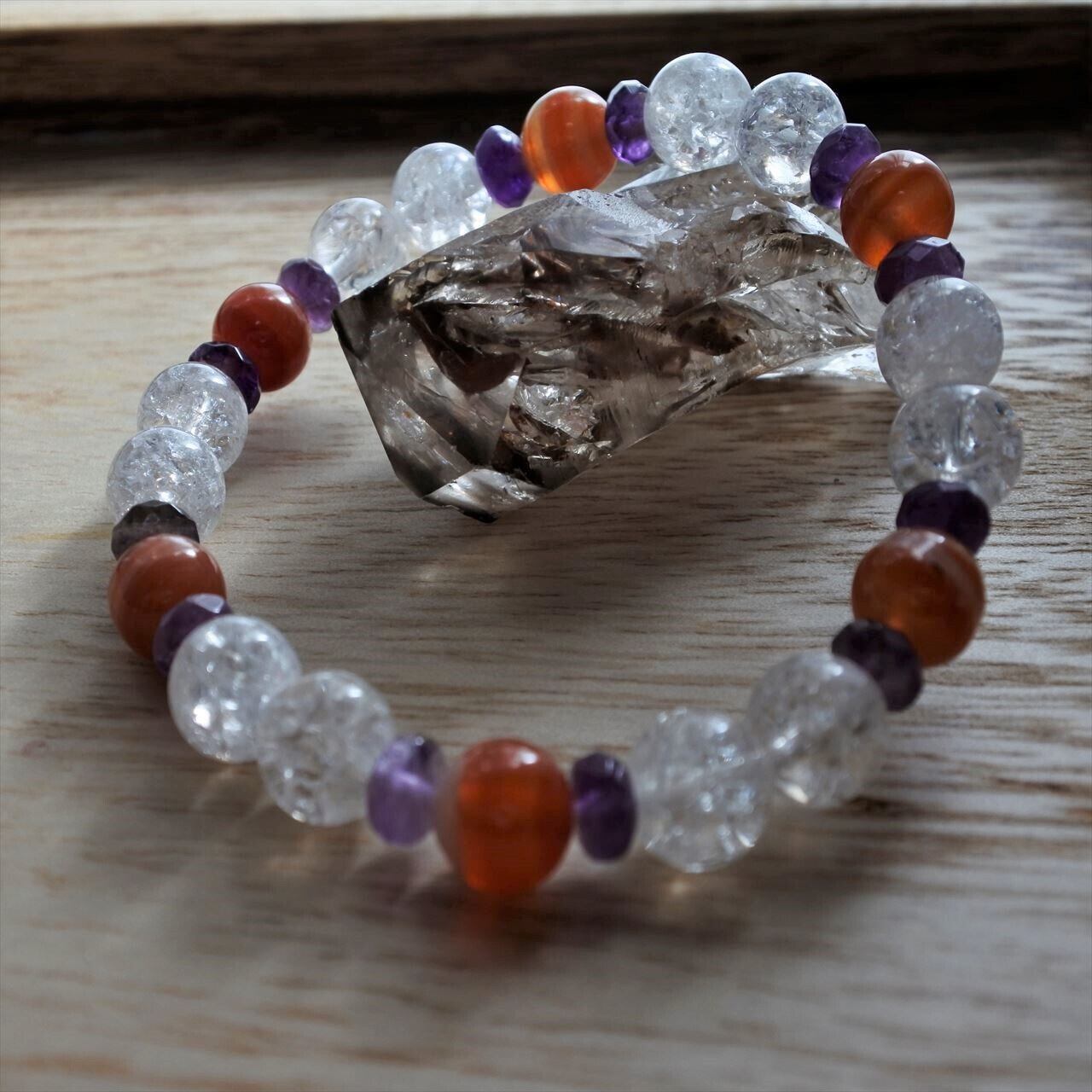 ボタン型のアメジスト、1つだけスモーキークォーツとのバイカラーが入っています