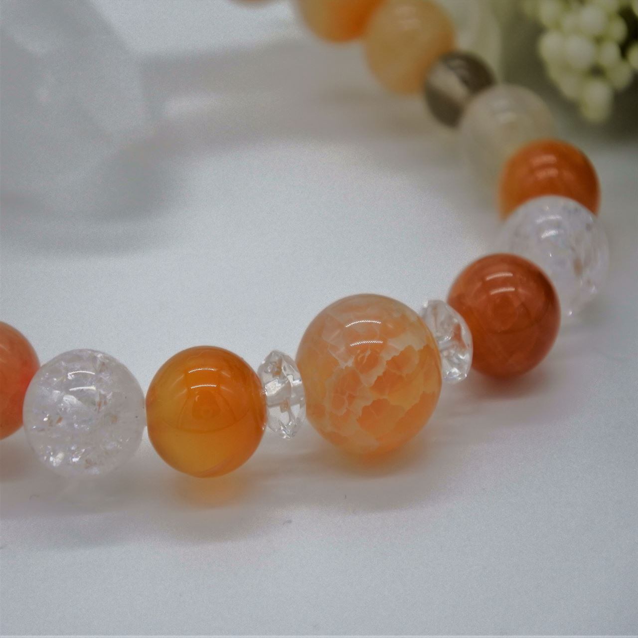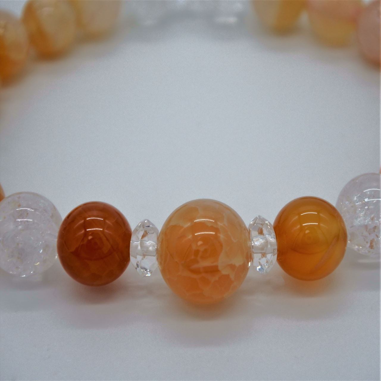 ドラゴンアゲートというと、通常はクラックを入れたアゲートに、黒い染料を流し込むためどちらかというと男性的な雰囲気のものが多いのですが、こちらはシャーベットオレンジで、可愛らしく仕上がりました