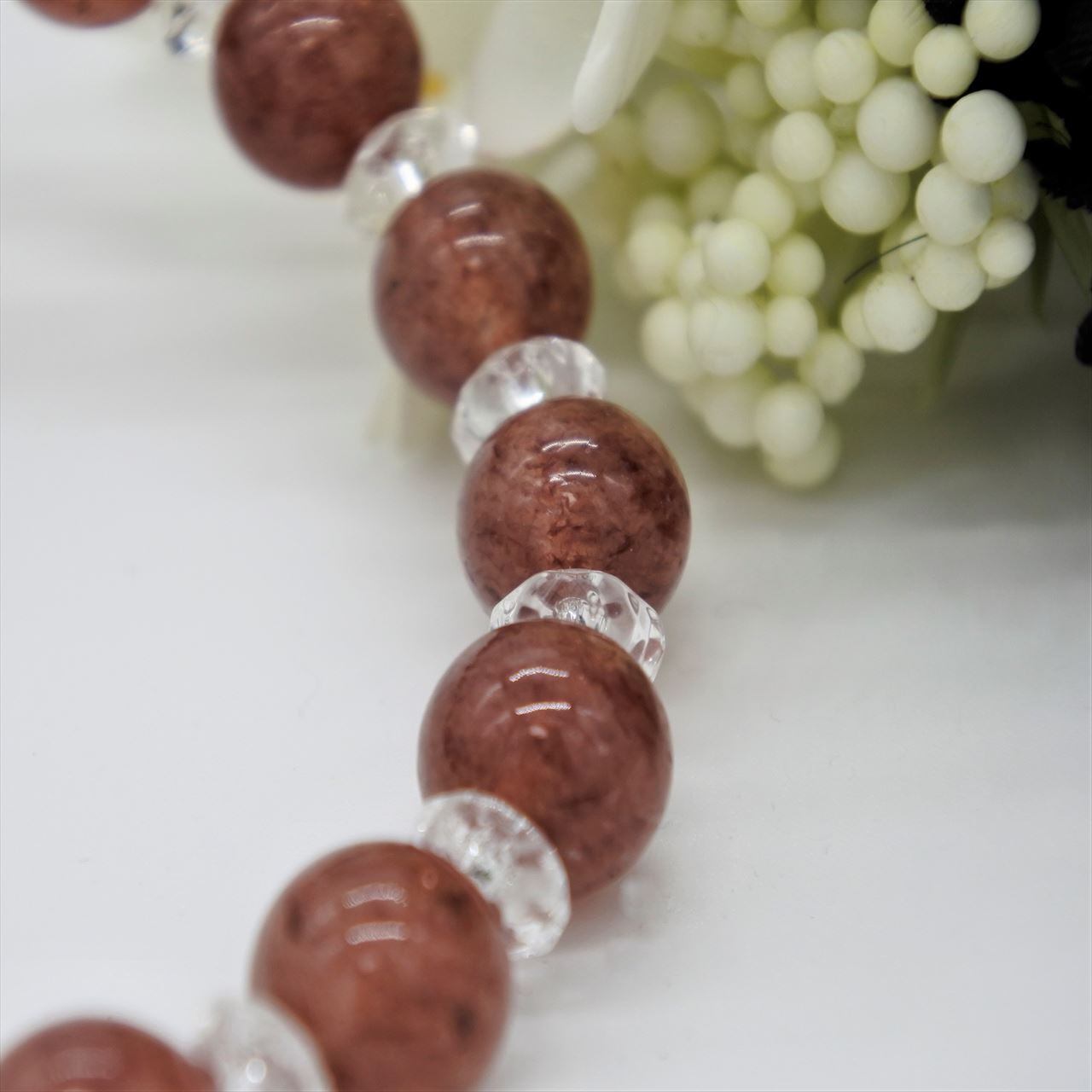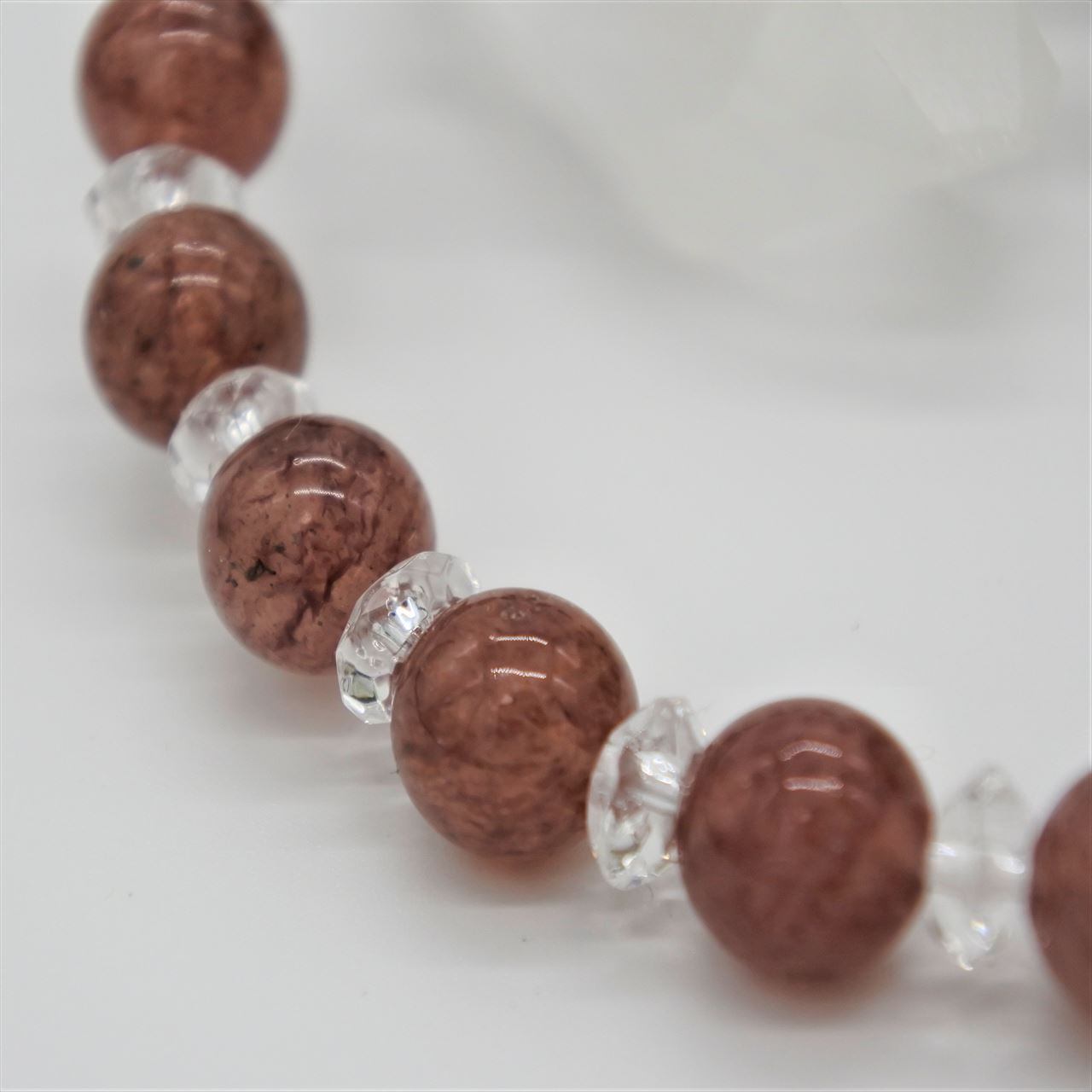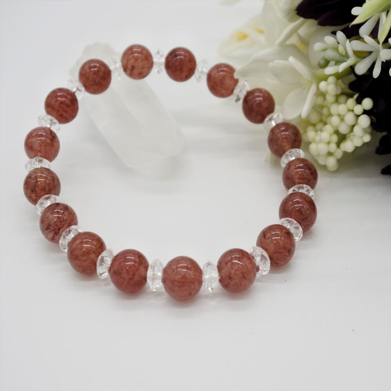 自己愛を高めてくれる石、マンガノエピドートインクォーツ(アフリカンストロベリークォーツ)に、浄化力が高く隣り合う石の性質を強化してくれる万能選手の水晶を組み合わせました