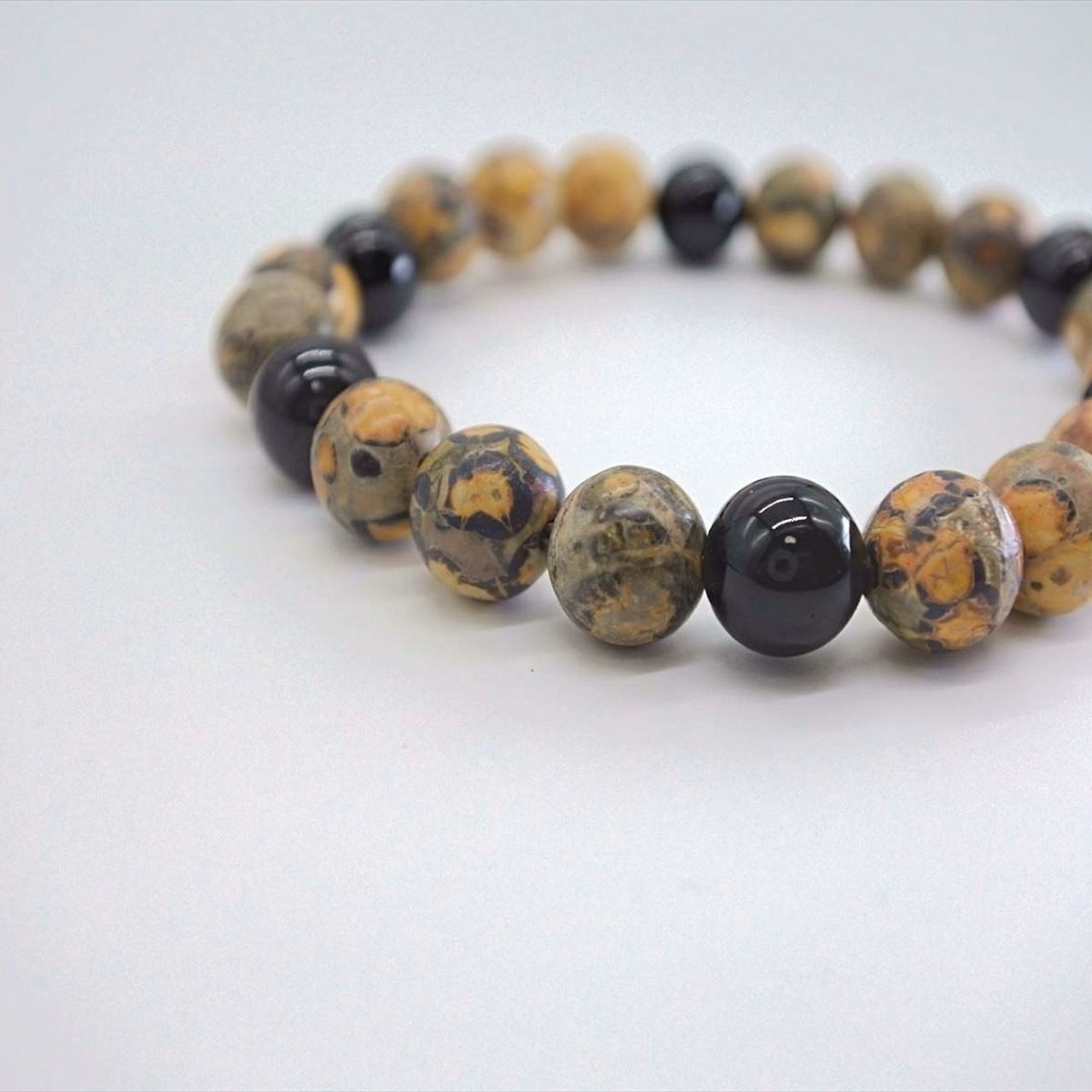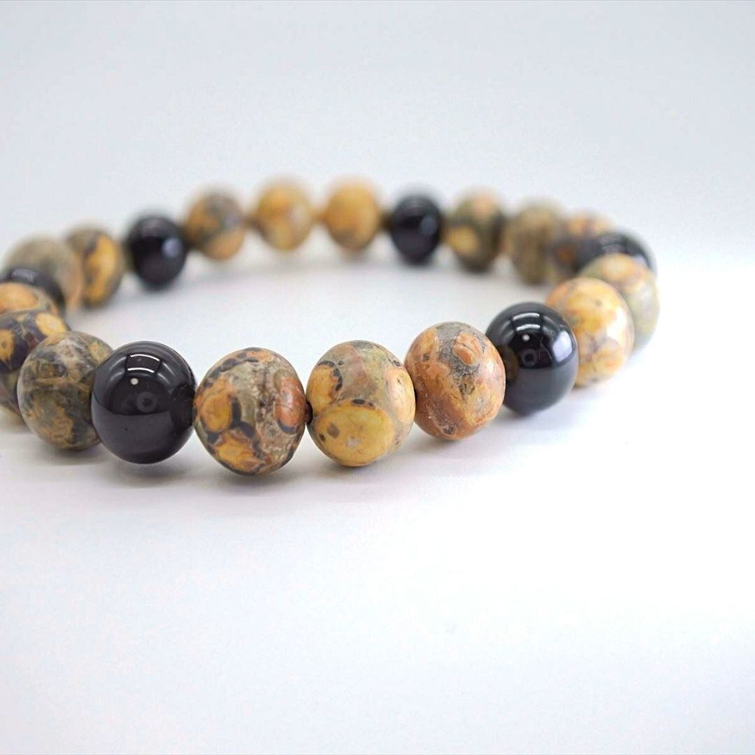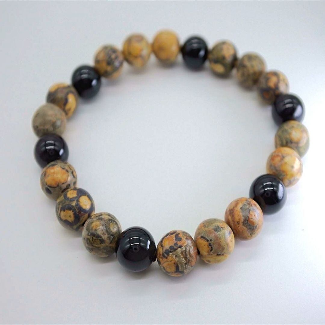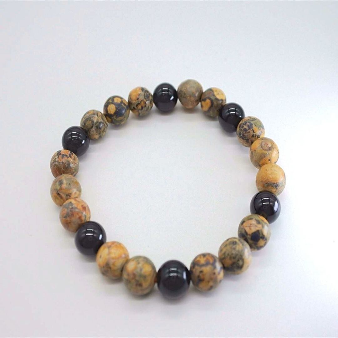 見た目そのままの名前を持つレオパードスキンジャスパーと、浄化力も高いグラウンディングの石ブラックトルマリンのブレスレット