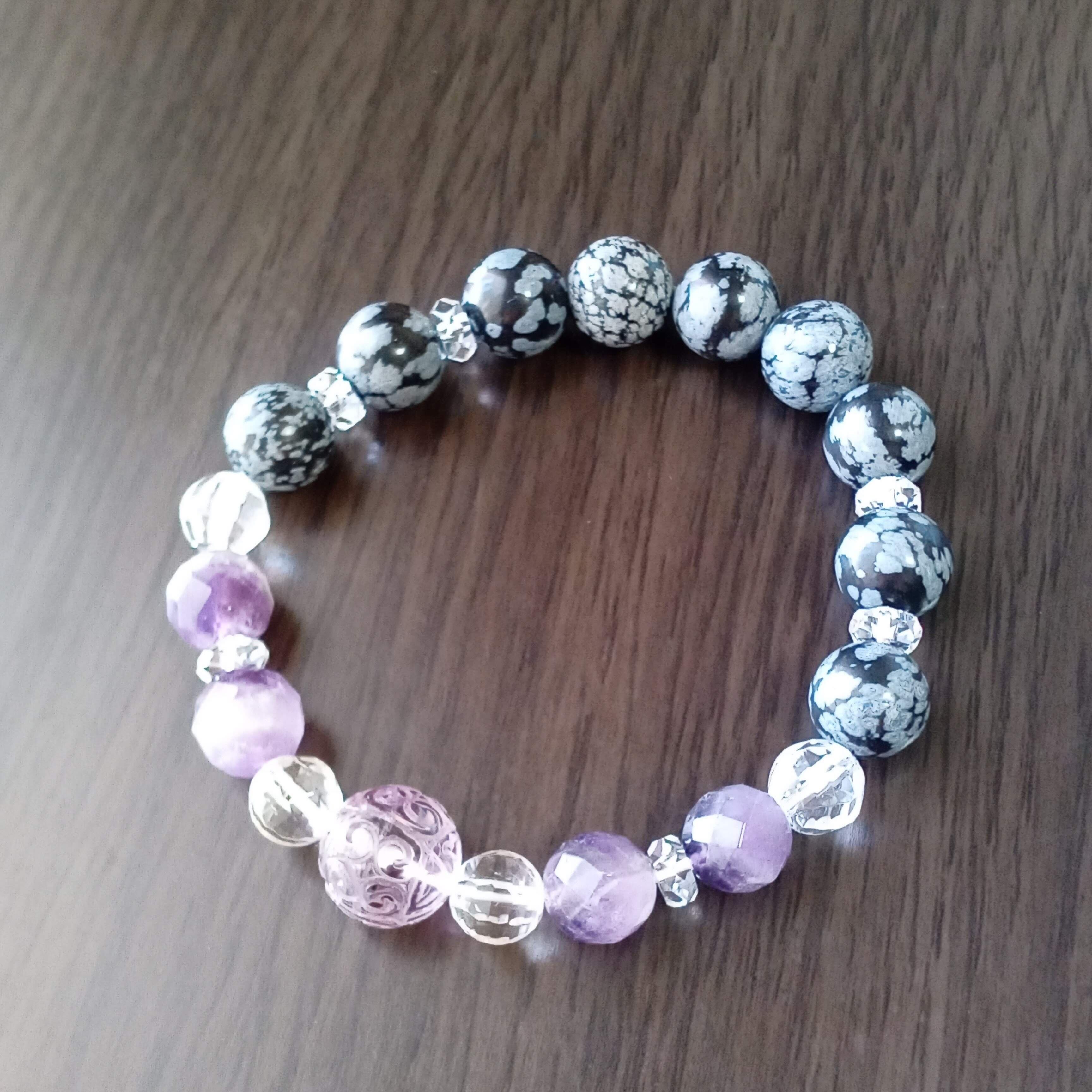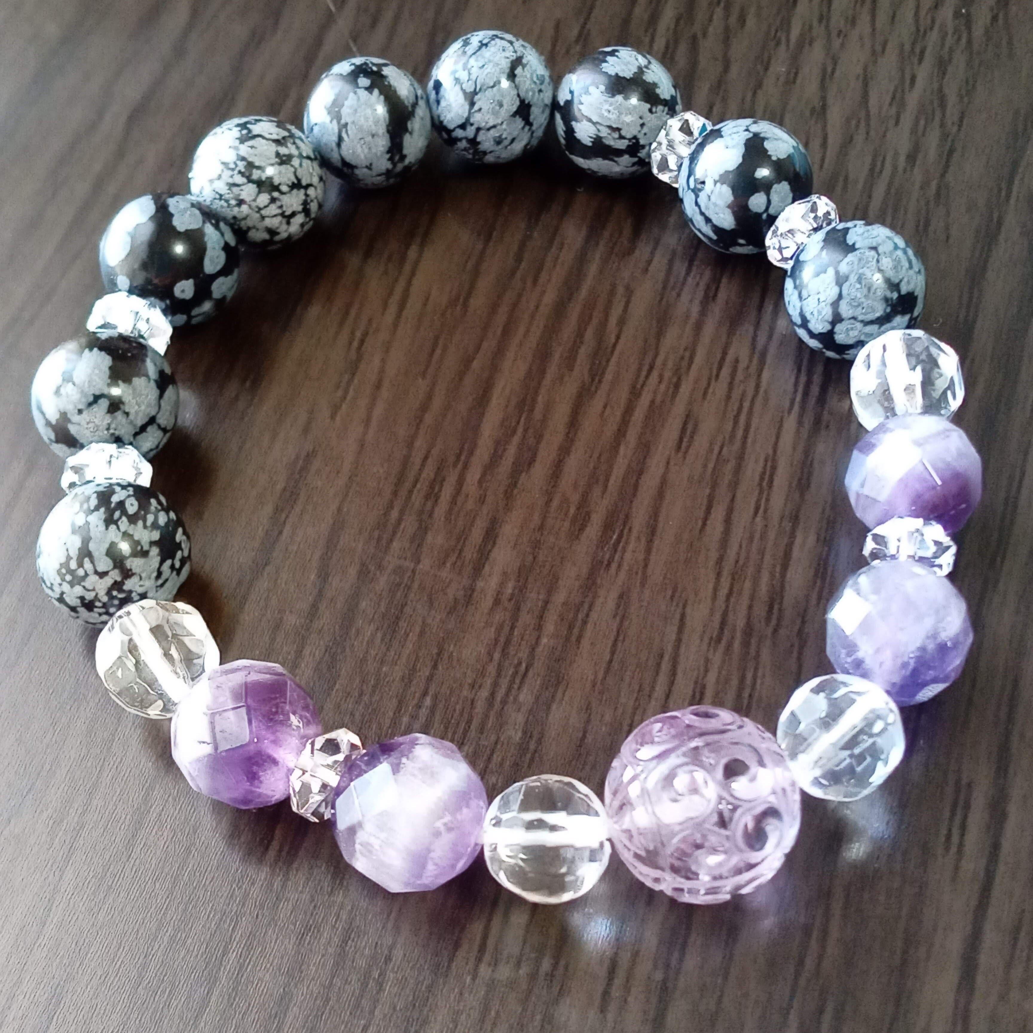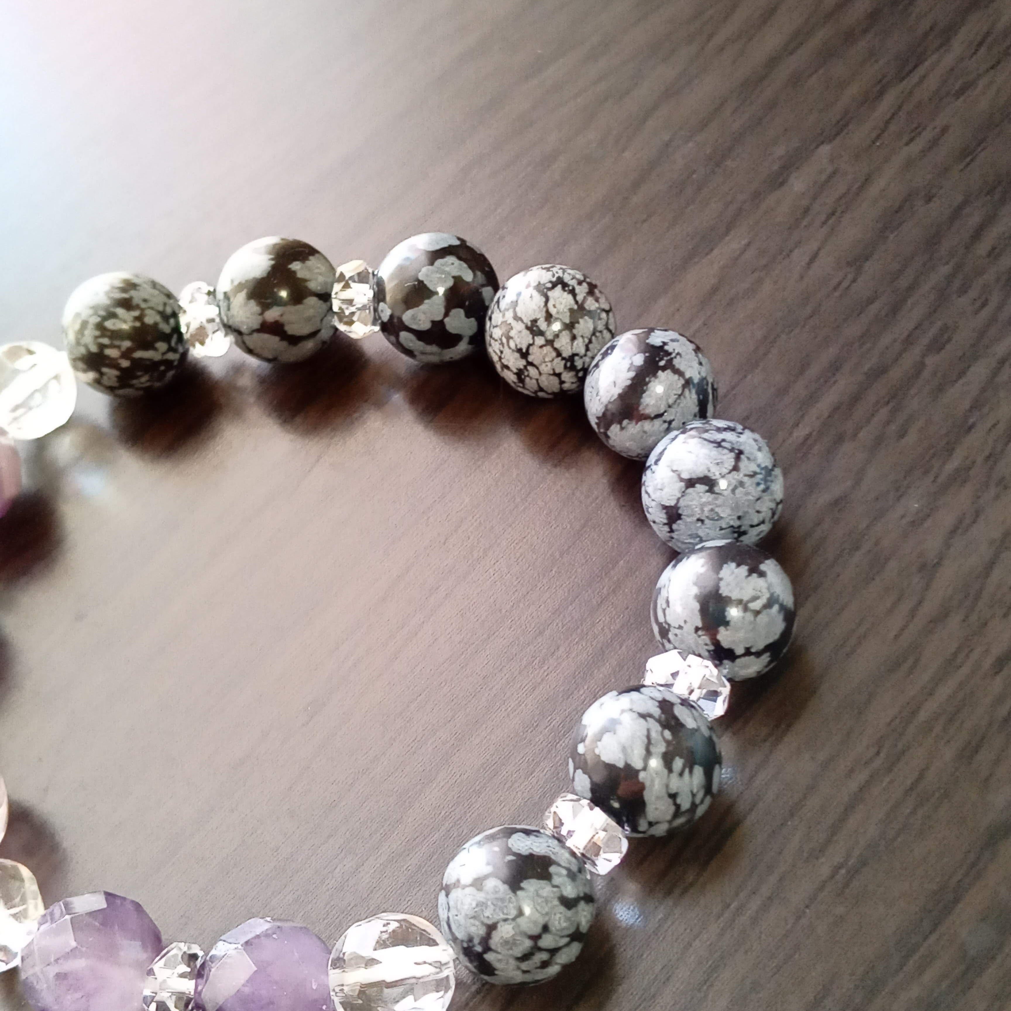 スノーフレークオブシディアン・アメジスト(ラベンダー)・ケープアメジスト・水晶