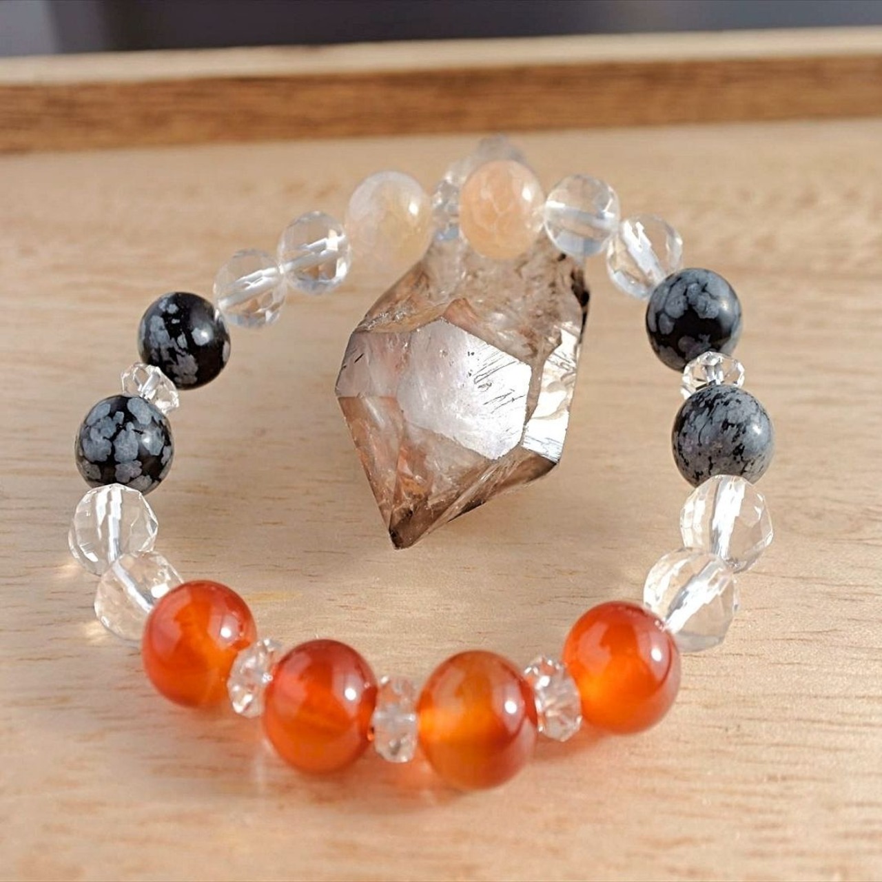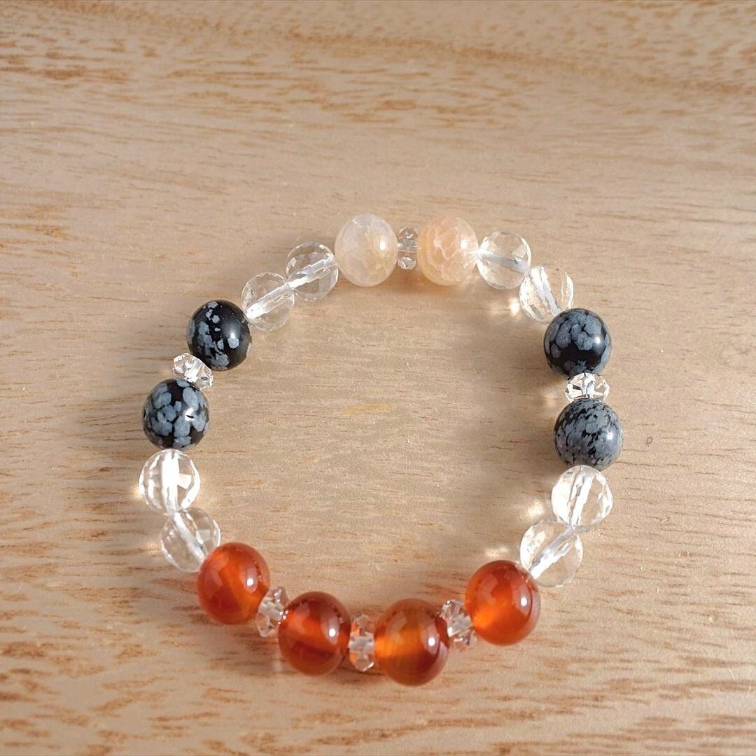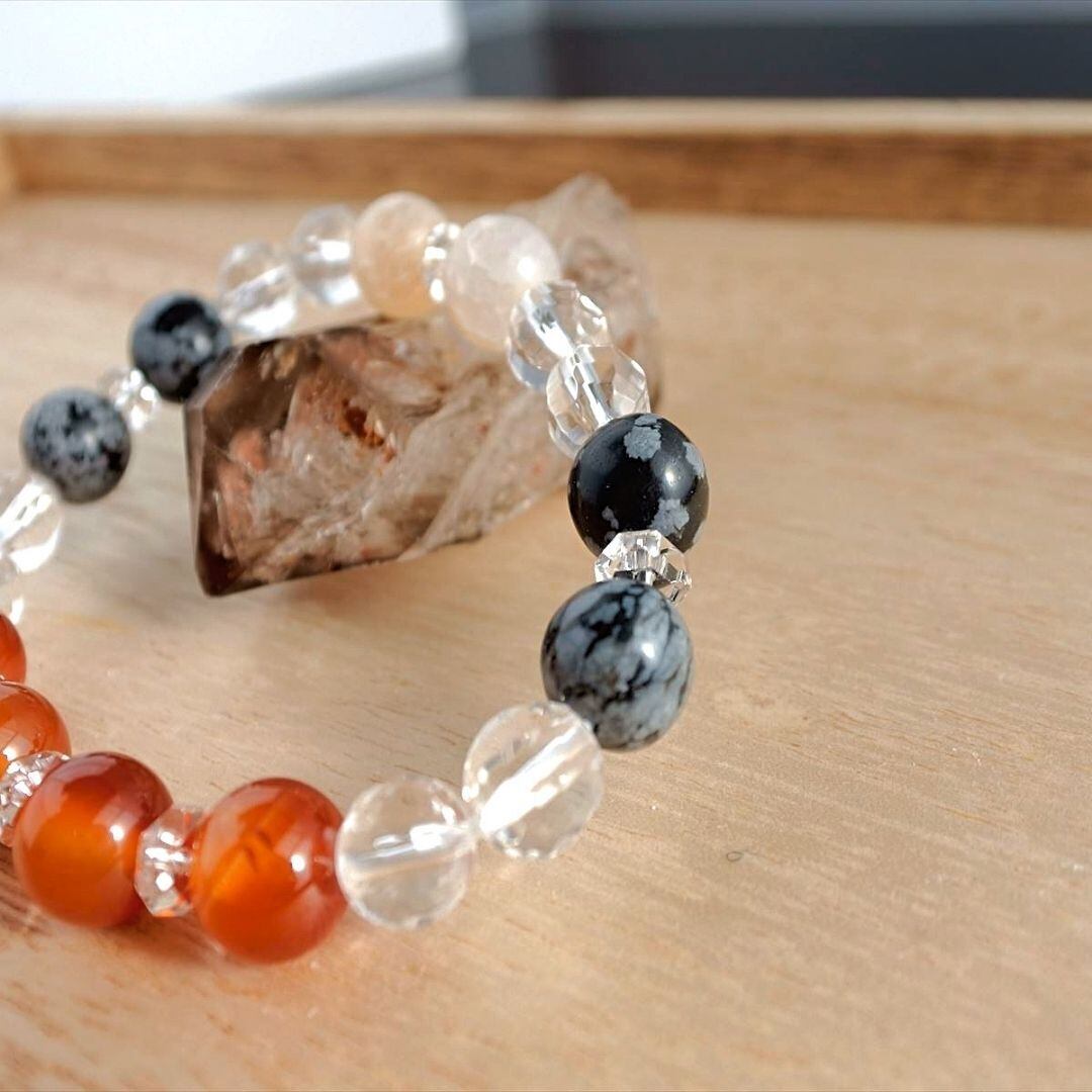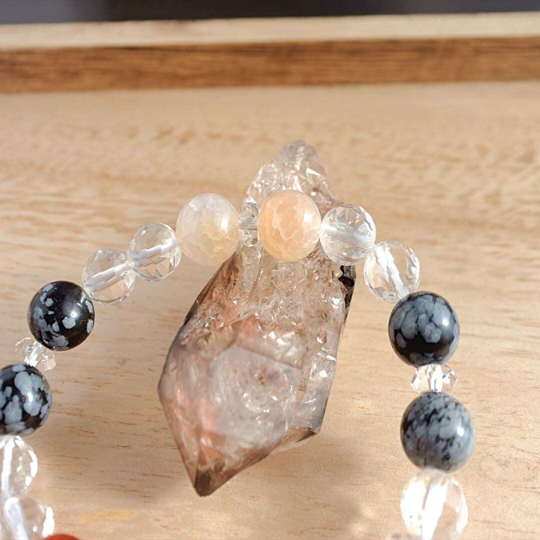 カーネリアン・ドラゴンアゲート・スノーフレークオブシディアン・水晶