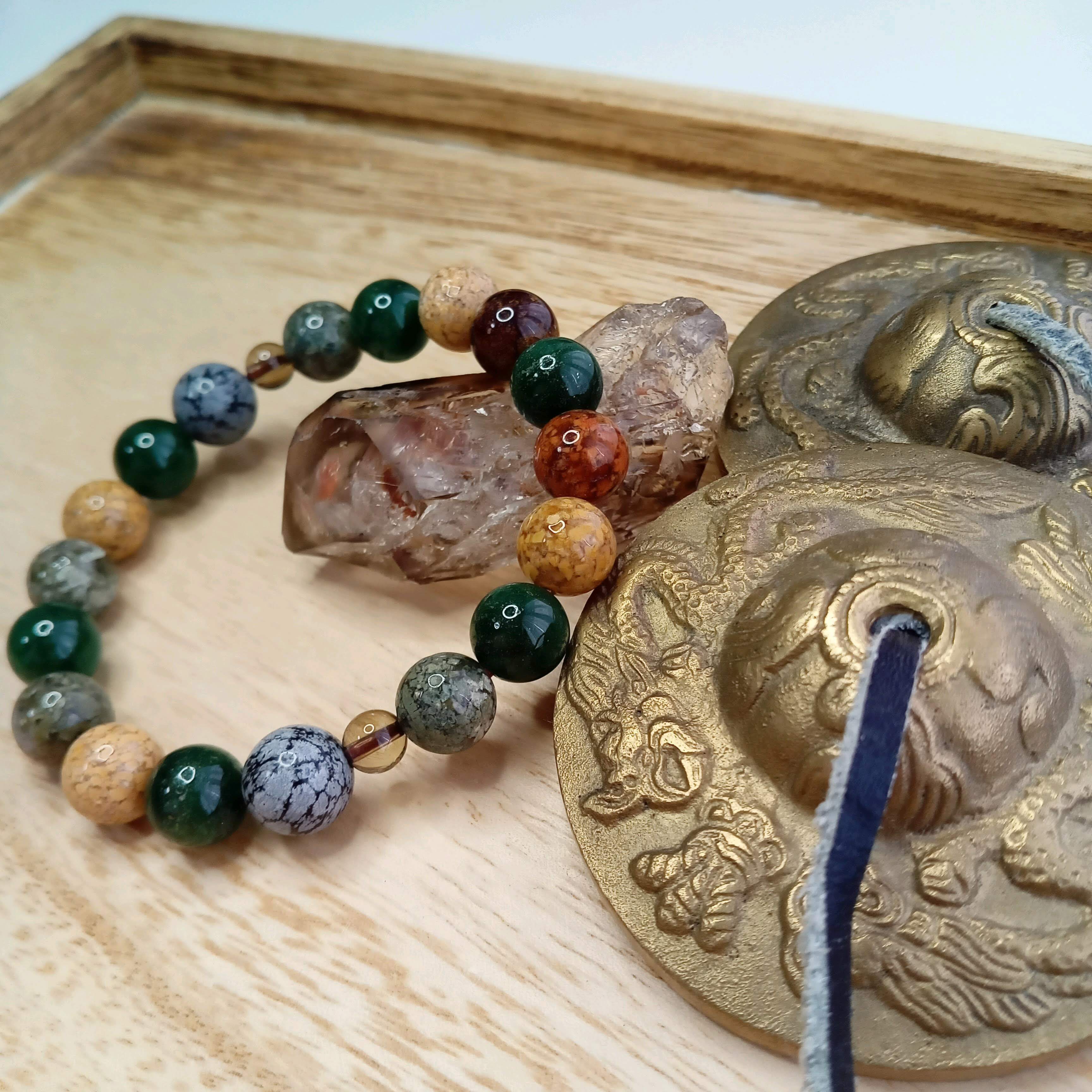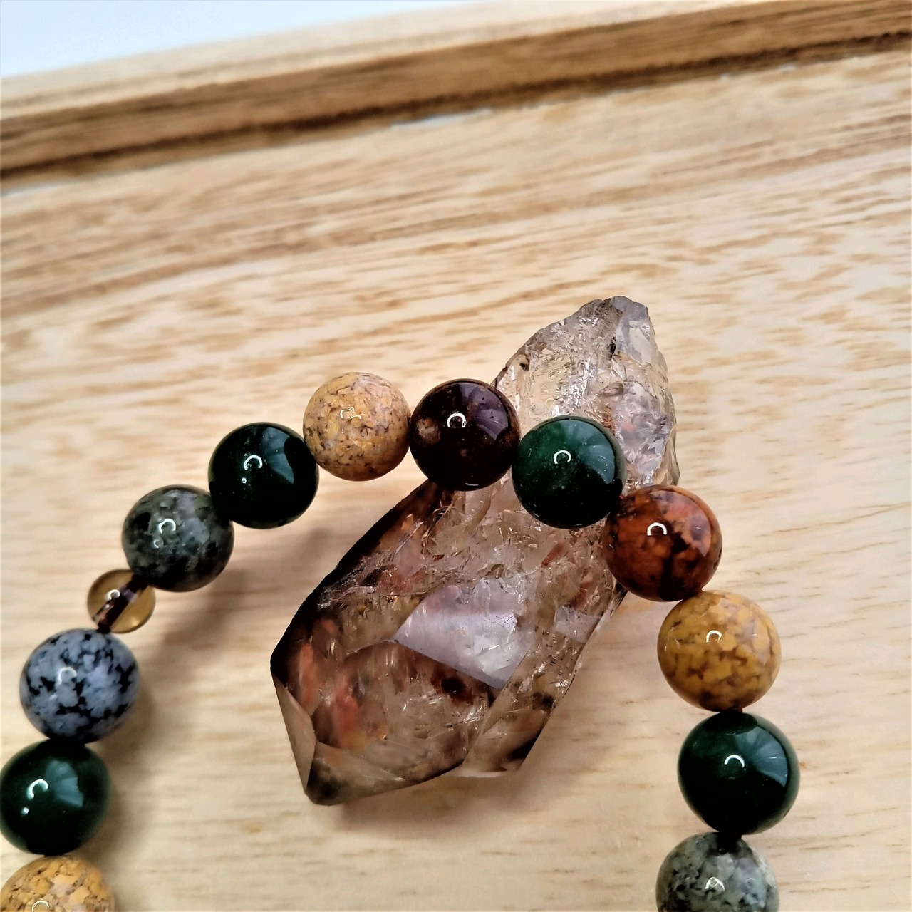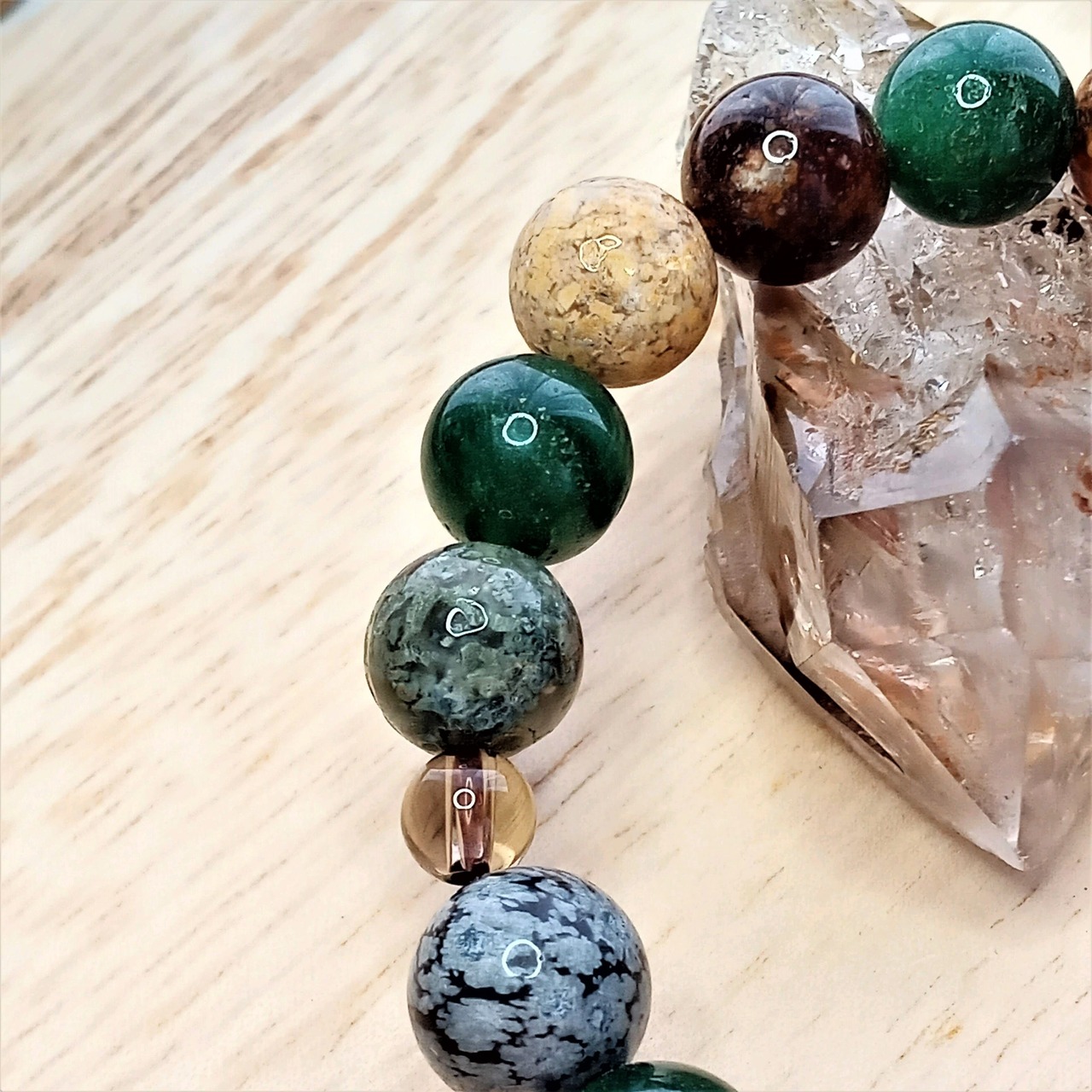 アゲート(マルチカラー)・アベンチュリン・スノーフレークオブシディアン。スモーキークォーツ