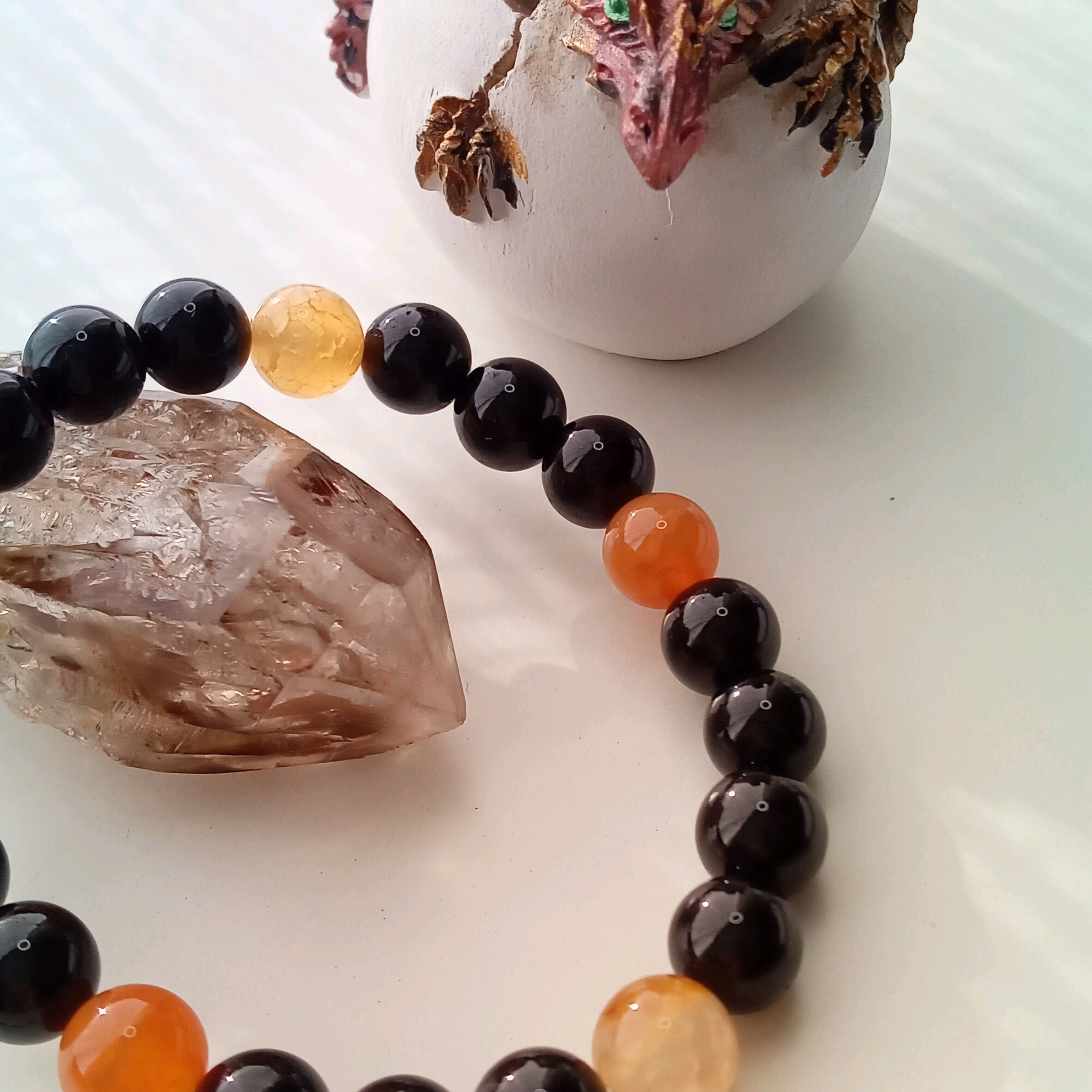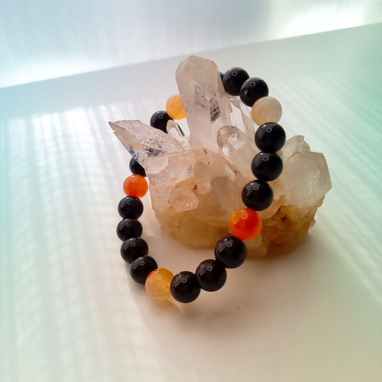 このブレスレットには、『邪気除け』の効果の高いブラックトルマリンをたっぷり使っているため、見えない攻撃による悪影響を防ぎ、あなたを護ってくれます
